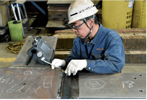 工程毎に検査はあり、それぞれの工程が進む前に社内検査を行います。材料受け入れ検査・組立検査・外観検査・超音波探傷検査・製品検査・塗膜厚検査等があります。 社内検査が終わると第三者により外観・超音波探傷検査が行われます。第三者による検査後に工事管理者による立会製品検査が行われます。